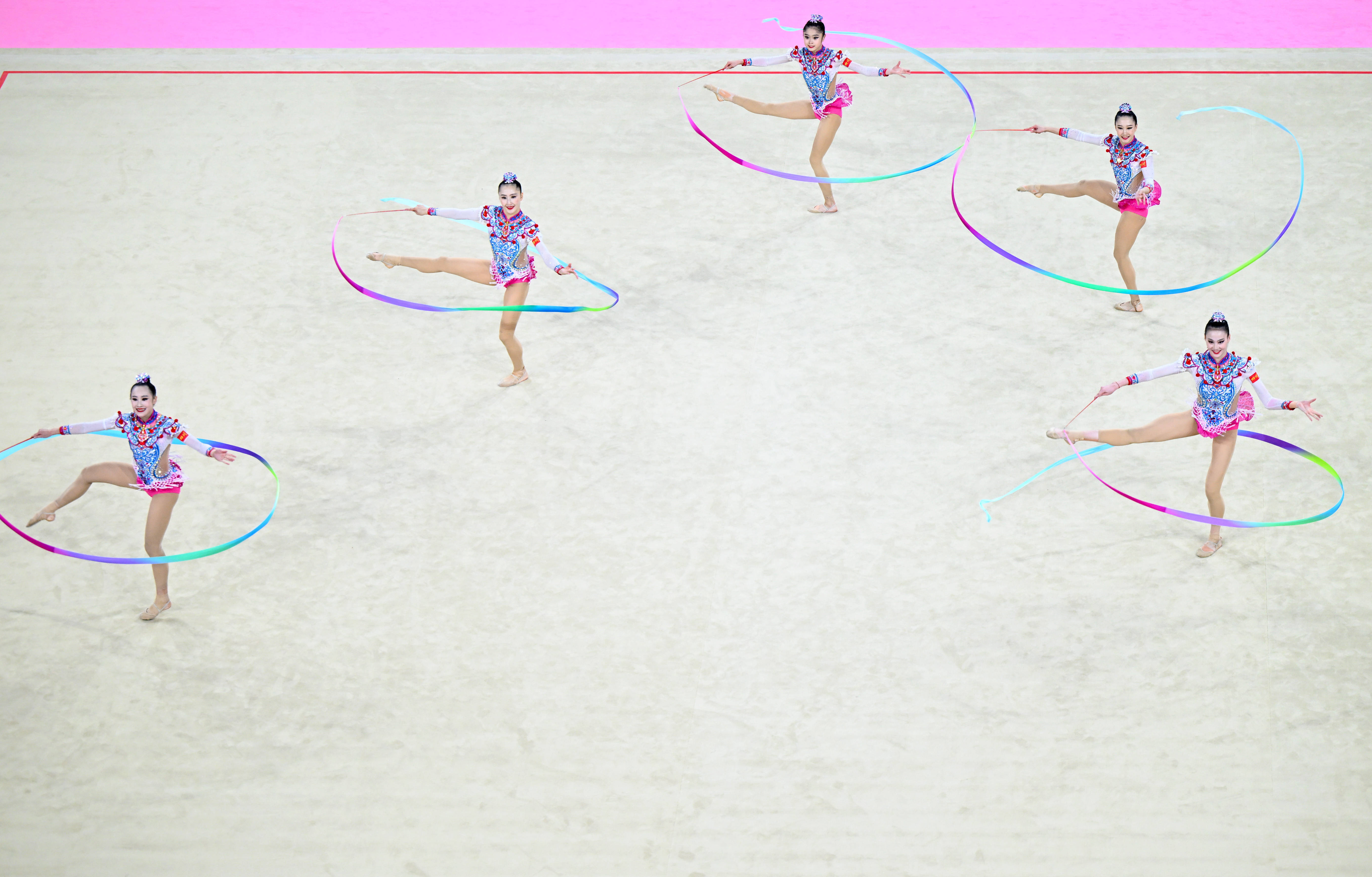 当日下午进行的艺术体操集体全能决赛中,四川队延续预赛的亮眼表现,5带和3球2圈分别拿下25.2分和26.65分,均是全场最高分。经与预赛成绩相加,最终以102.15分夺冠。